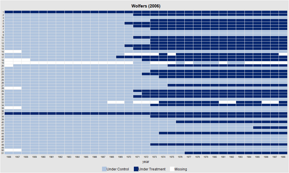 ax.set_title("Treatment Status: Wolfers (2006)")